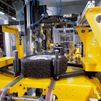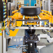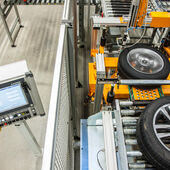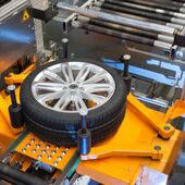 The automatic wheel unbalance measuring station type 420RBLR is used for the automatic measurement of dynamic unbalance on complete car wheels in both steel and light metal versions. The machine determines the unbalance of wheels in single-batches under production conditions in chained mode.